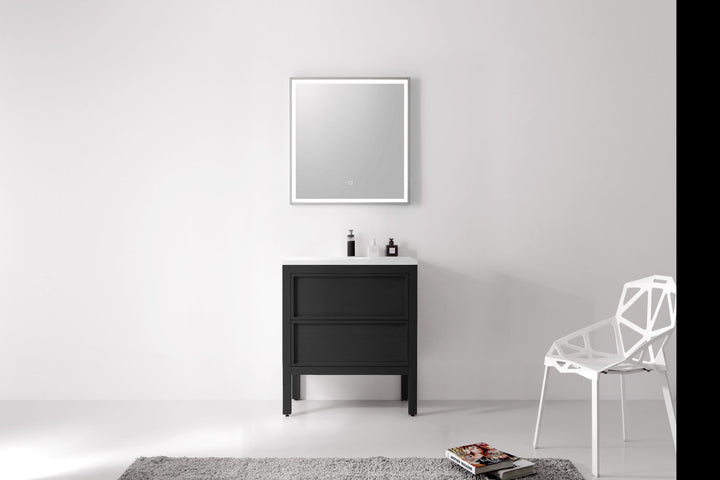 VANITÉ SUR PATTES 2 TIROIRS ''SHAKER'' CHÊNE NOIR MAT 30"