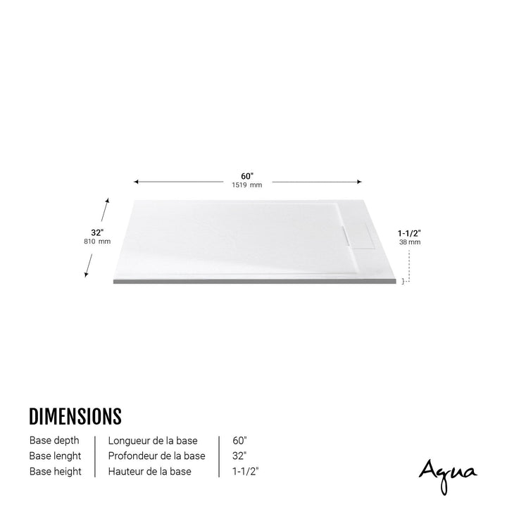 32"x60" base de douche blanc mat pour installation en alcôve ou en coin