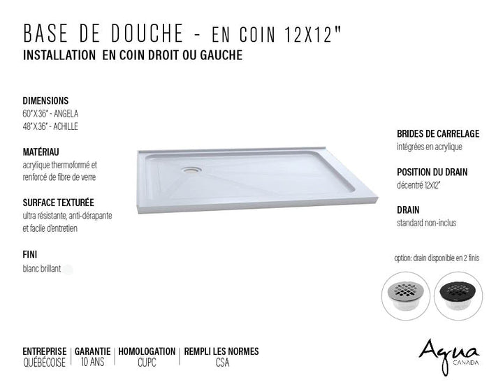 Base de douche 36"x 48"(drain de coin 12 x 12) côté gauche