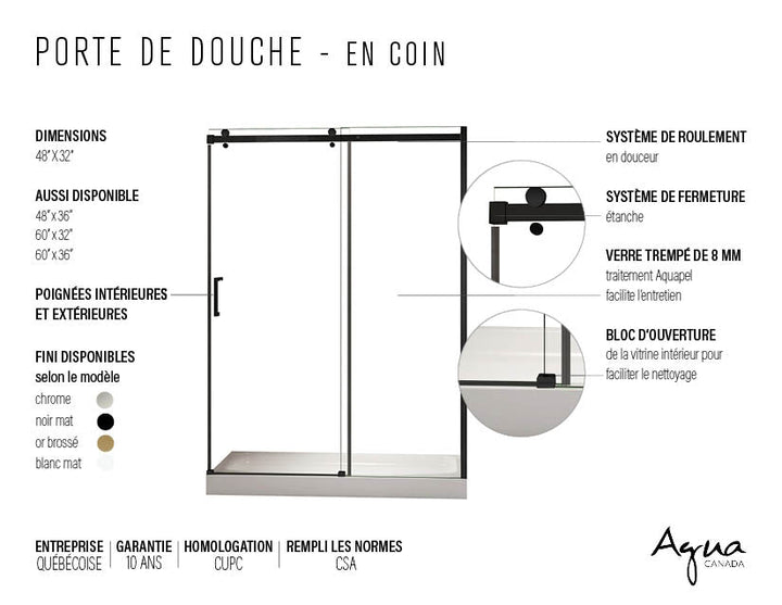 Option 1:Porte de douche 48" | Option 2:Porte de douche 60" |