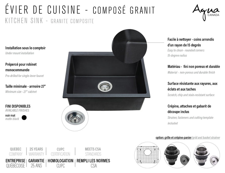 Nos amateurs de granit élégant, voici un évier de haute qualité composé à 80 % de granit naturel, l'évier de cuisine noir mat EURO présente une surface résistante aux rayures, aux éclats, aux taches et non absorbante. CommeUn entraîneur, des attaches et un gabarit de découpe sont inclus.