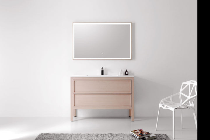 VANITÉ SUR PATTES 2 TIROIRS ''SHAKER'' CHÊNE BLEACHED 48"