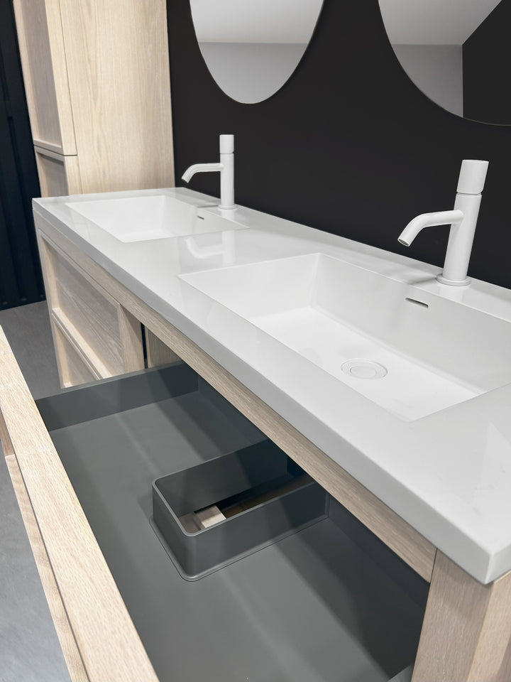 Le choix parfait pour ceux qui recherchent un meuble-lavabo de salle de bain classique et intemporel. Tiroirs fabriqués en placage de bois de chêne blanchi, ce modèle durera et apportera de la beauté à tout environnement de salle de bain.