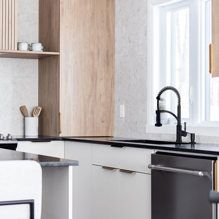 Élégant et à la mode, le robinet de cuisine à douchette amovible MAGICO-BK noir mat donnera instantanément un aspect haut de gamme à votre évier. Il est équipé d'une seule poignée latérale qui contrôle à la fois la température et le débit de l'eau. Sa construction en laiton massif et sa cartouche en céramique assurent la durabilité du produit. Avec sa finition noire stylée, ce robinet ultra tendance sera la source de multiples compliments!