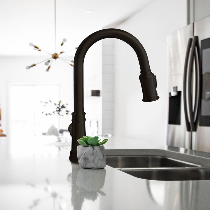 Apportez une touche classique à votre cuisine grâce au robinet de cuisine intemporel MONACO-GD. Ce robinet en laiton massif comprend une douchette rétractable à 2 jets et un bec évasé, alliant commodité et style. Avec sa finition de qualité en laiton brossé (or), vous pouvez l'assortir à n'importe quelle cuisine pour souligner son look.