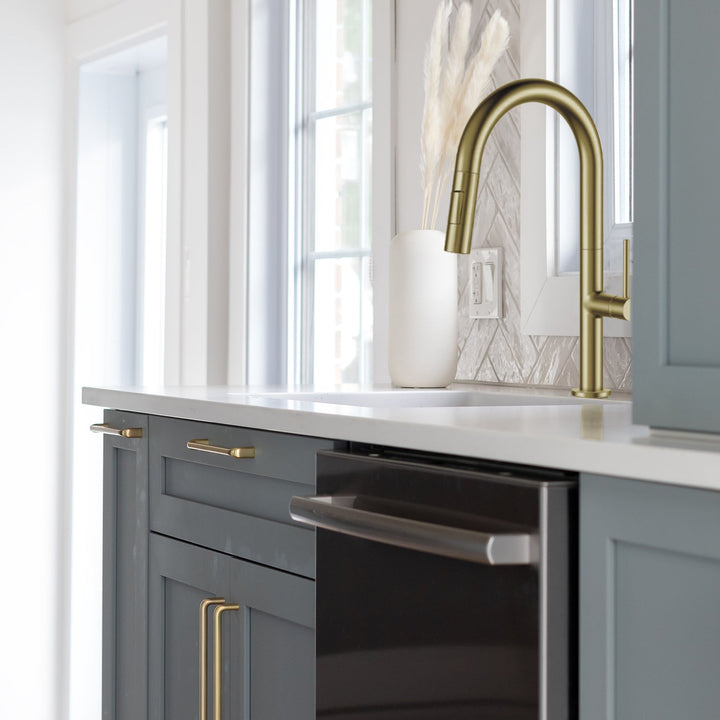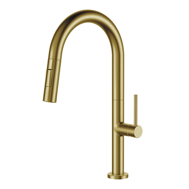 Optez pour un look luxueux dans la cuisine avec le robinet en laiton brossé doré MOOCHI-GD. Son design simple et arrondi en fait un objet intemporel qui s'accorde aussi bien avec les cuisines traditionnelles que contemporaines, tandis que la finition dorée lui confère un style inégalé. La douchette extractible offre 2 options de jets pour plus de polyvalence dans la cuisine. La construction en acier inoxydable, ainsi que la cartouche en céramique, garantissent sa qualité et sa durabilité. Un choix tendance pour votre cuisine !