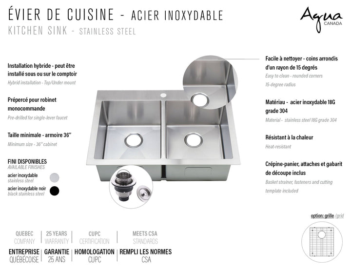 The ELDORADO is a high-quality modern double kitchen sink made of stainless steel with a satin finish and a clean design makes it the perfect option for any type of kitchen design. Easy to clean and hygienic, It stands up to your toughest kitchen tasks. The ELDORADO kitchen sink can be combined with the kitchen sink faucet of your choice.