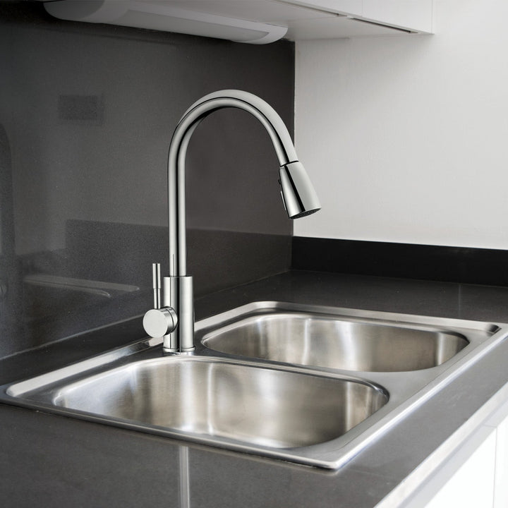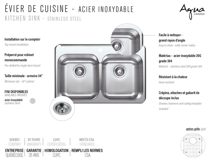 Simply designed, the ELROY1 kitchen sink is perfect for modern-style kitchens. Made of gauge 18 stainless steel with a satin finish, this sink has two bowls. The ELROY1 is easy to clean and hygienic, It stand up to your toughest kitchen tasks and will add a modern touch to your kitchen.