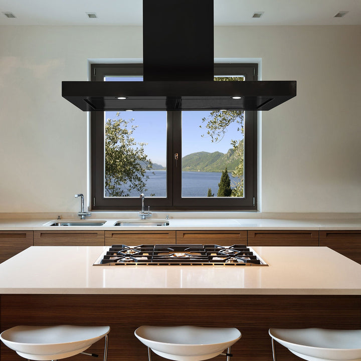 Matte Black Island Square Range Hood 500Cfm