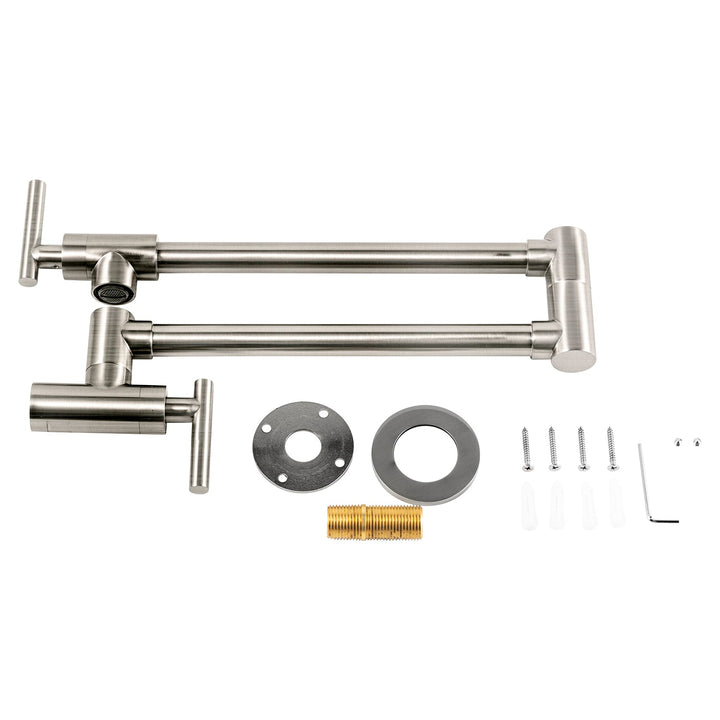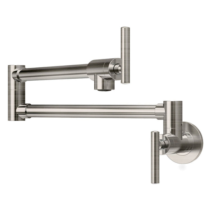 The MANNOX-BN Pot Filler is the ultimate luxury, ensuring convenient flow control over a cooktop. Dual joints allow for maximum reach, and dual shutoff valves mean never reaching over a hot surface to turn it off. This beautiful faucet will add character and personality to your sink with its brushed nickel finish.