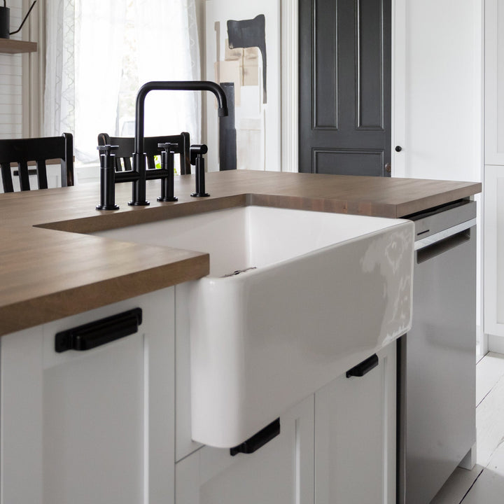 Our MONTI-BK kitchen faucet reinvents the classic bridge faucet configuration with industrial design elements for a glamour modern look. Because of its added architectural elements and detailing, the premium matte black finish will pop against your surrounding kitchen decor. Allow the brass construction, side sprayer, and swivel abilities to provide a sturdy and reliant fixture, great for use with any sink.