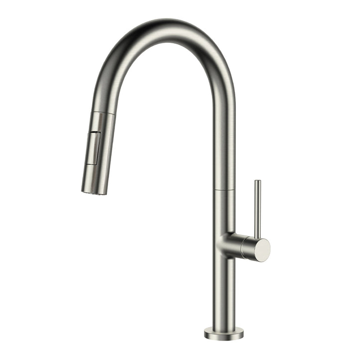 Opt for a luxurious look in the kitchen with MOOCHI-BN brushed nickel faucet. Its simple rounded design makes it a timeless item that matches both traditional and contemporary kitchens, while the brushed nickel finish gives it unparalleled style. The pull-out spray offers 2 jet options for extra versatility in the kitchen. The stainless steel construction, as well as the ceramic cartridge, ensure its quality and durability. A trendy choice for your kitchen!